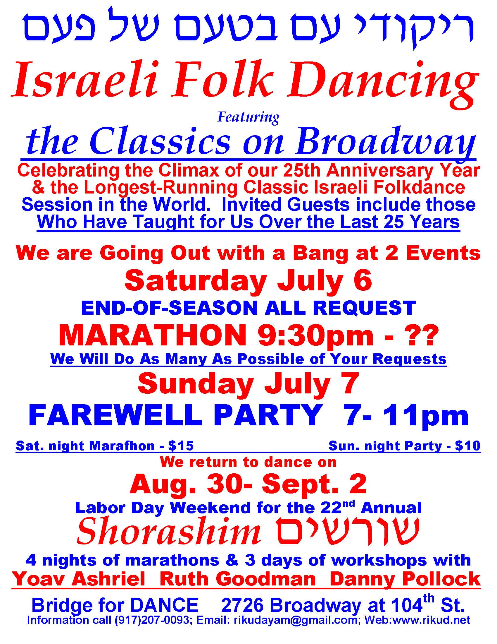 Saturday Night Marathon July 6 & End-of-Season Party Sunday July 7