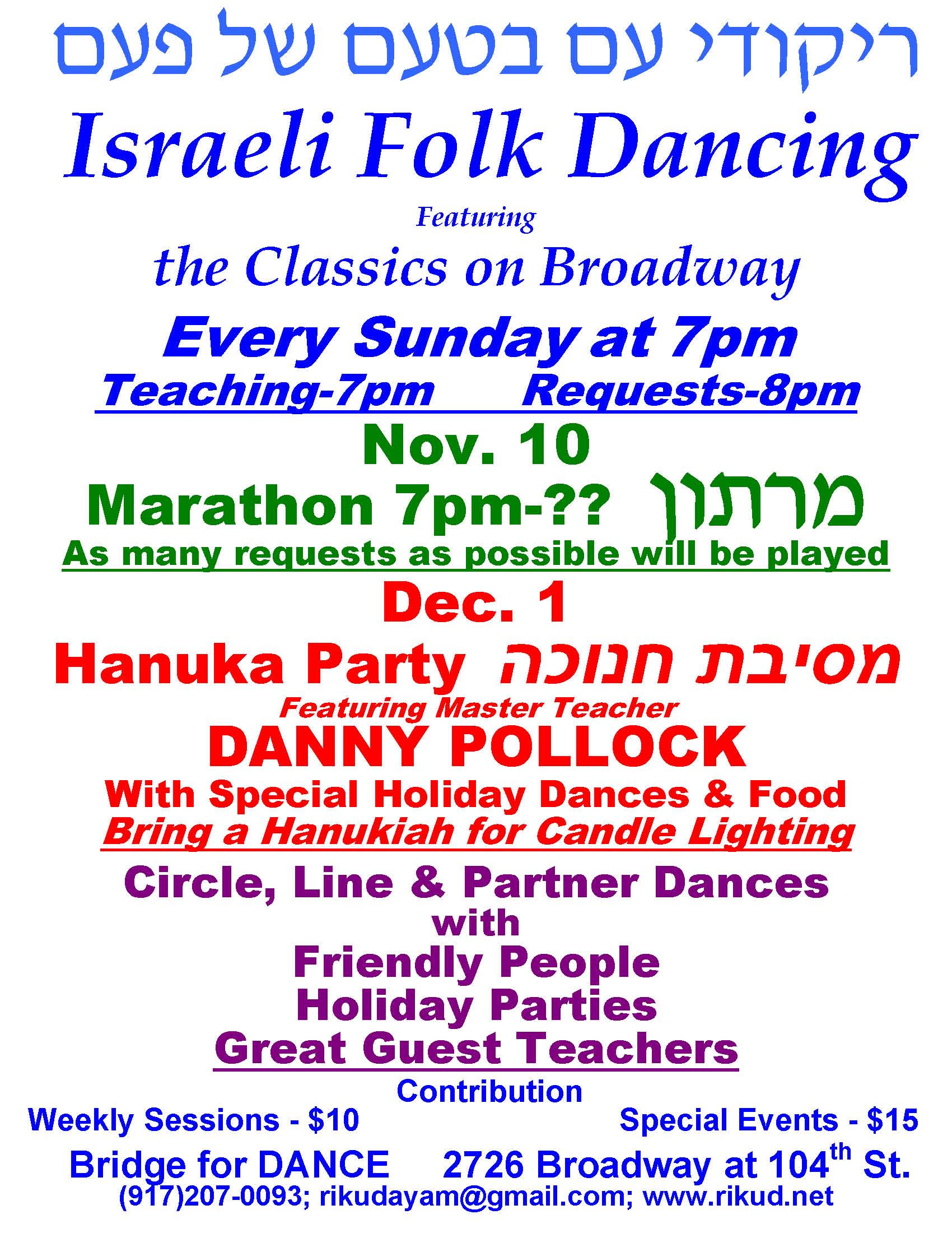 For information call (917)207-0093; Email: rikudayam@gmail.com; Web:www.rikud.net