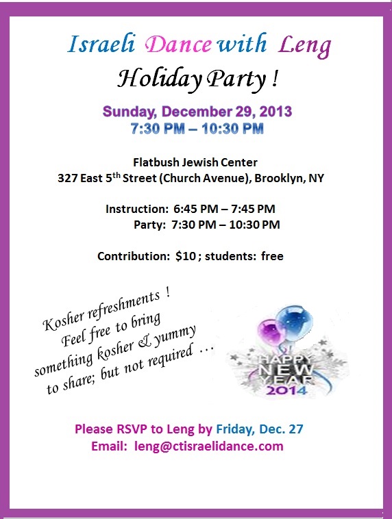Please RSVP by Friday, December 27 to leng@ctisraelidance.com or call