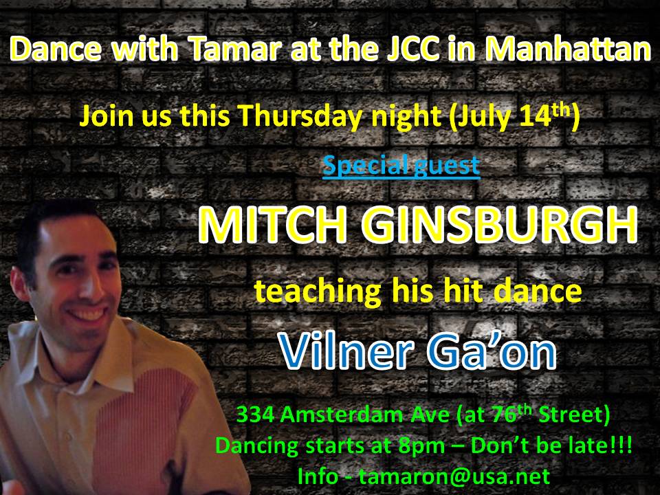 Come dance with Tamar at the Jcc in Manhattan. special guest Mitch Ginsburgh teaching his dance Vilner Gaon