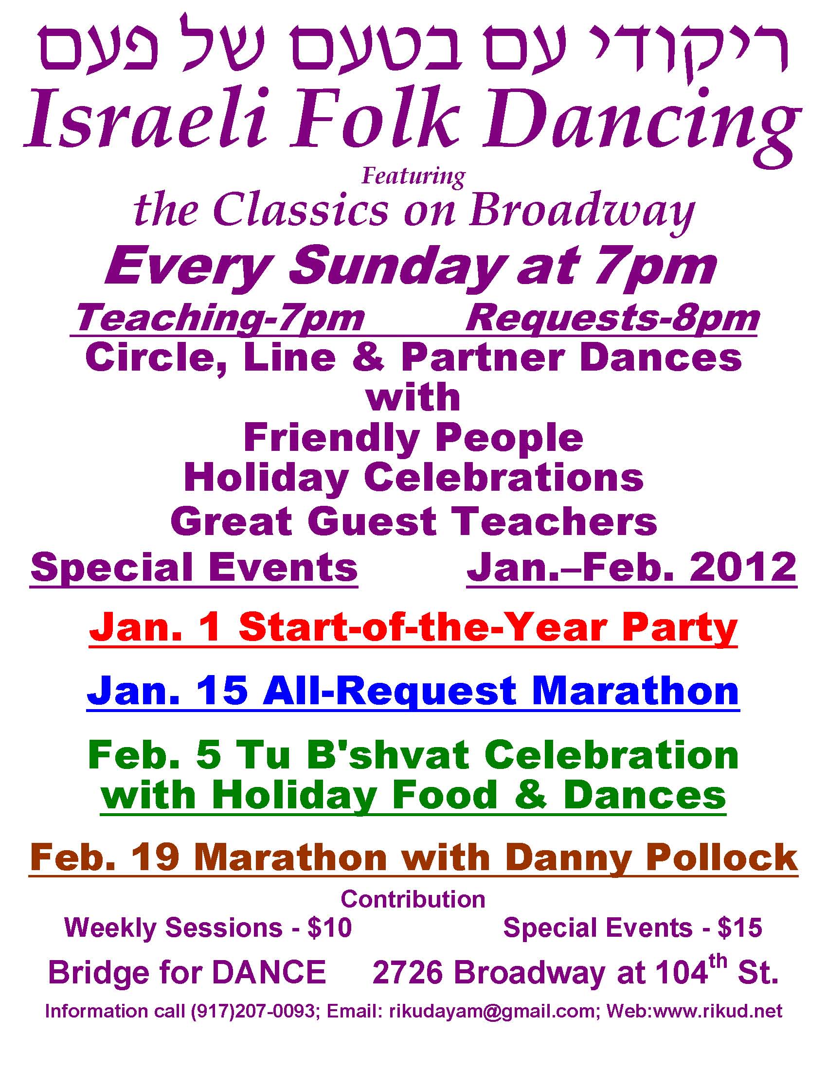 Classic Israeli Folkdancing on Broadway – Special Events in Feb. 2012